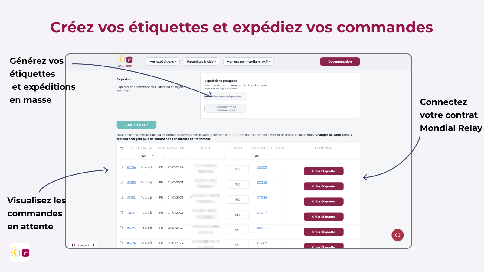 Imprimez vos étiquettes, expédiez et suivez vos colis directement dans votre back-office Shopify.